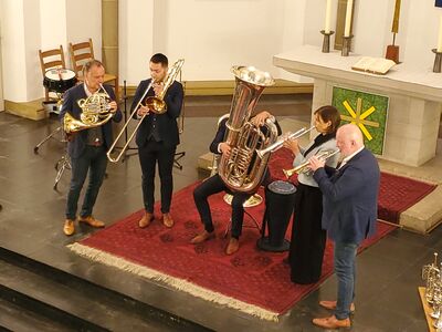 Ein Wochenende der ganz besonderen Art konnten alle Freunde der Blechblasinstrumente im Ravensberger Land erleben. Das Bünder Bläserfestival begann am Freitagabend mit einem festlichen Konzert des Bläserensembles „Harmonic Brass“ aus München. Obwohl nur zu fünft, füllten sie den großen Raum der Pauluskirche mit wundervollen Klängen aus ihrem neuen Programm „Playlist“. Dieses umfasste neben Klassikern wie dem Bolero von Maurice Ravel vor allem drei thematische Suiten. Zunächst wurde „Die Moldau“ von Bedrich Smetana nach einer Bearbeitung von Karl-Wilhelm Hultsch, dem Tubisten des Ensembles, sehr einfühlsam vorgetragen. Im zweiten Teil des Konzertes folgte dann mit der Komposition „Gipfelstürmer“, geschrieben von der Trompeterin Elisabeth Fessler, eine klangvolle Darstellung der Berge, wie sie ein Wanderer liebt. Und schließlich brachte der Hornist Andreas Binder mit seinem Werk „One day of music“ musikalisch zum Ausdruck, wie ein typischer Tournee-Tag des Ensembles abläuft. Zum Schluss des Konzertes spielten die virtuosen Musiker „A Tribute to Queen“, arrangiert vom Trompeter und Ensemble-Gründer Hans Zellner. Alle Zuhörer der gut gefüllten Kirche bedankten sich mit einem kräftigen Applaus für die perfekten Darbietungen.