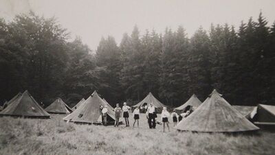 Die Fotoaufnahme zeigt die jungen Teilnehmer bei einem der ersten Zeltlager des CVJM Kreisverband Bünde