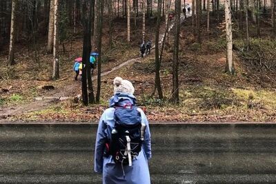 Wir sind in Ostercappeln gestartet und insgesamt 21,2 km bis zur „Nonnenstein-Hütte“ in Rödinghausen gewandert. Anstatt motiviert und voller Tatendrang, war meine Grundstimmung von Beginn an etwas verhaltener, denn bereits zum Etappenstart hatte es in Bindfäden geregnet. Aber wie das eben so ist, in der Gemeinschaft ist man stark und natürlich wollte ich mir nicht die Blöße geben zu kneifen. Mit entsprechender Ausrüstung und der Hoffnung es würde bald aufhören zu regnen ging es entspannt los. Nach der halben Strecke haben wir ein Café angepeilt um uns etwas aufzuwärmen und eine Pause im Trockenen zu machen. Bis dahin war die Welt für mich noch in Ordnung. Aber was danach kam, darauf war ich nicht vorbereitet.