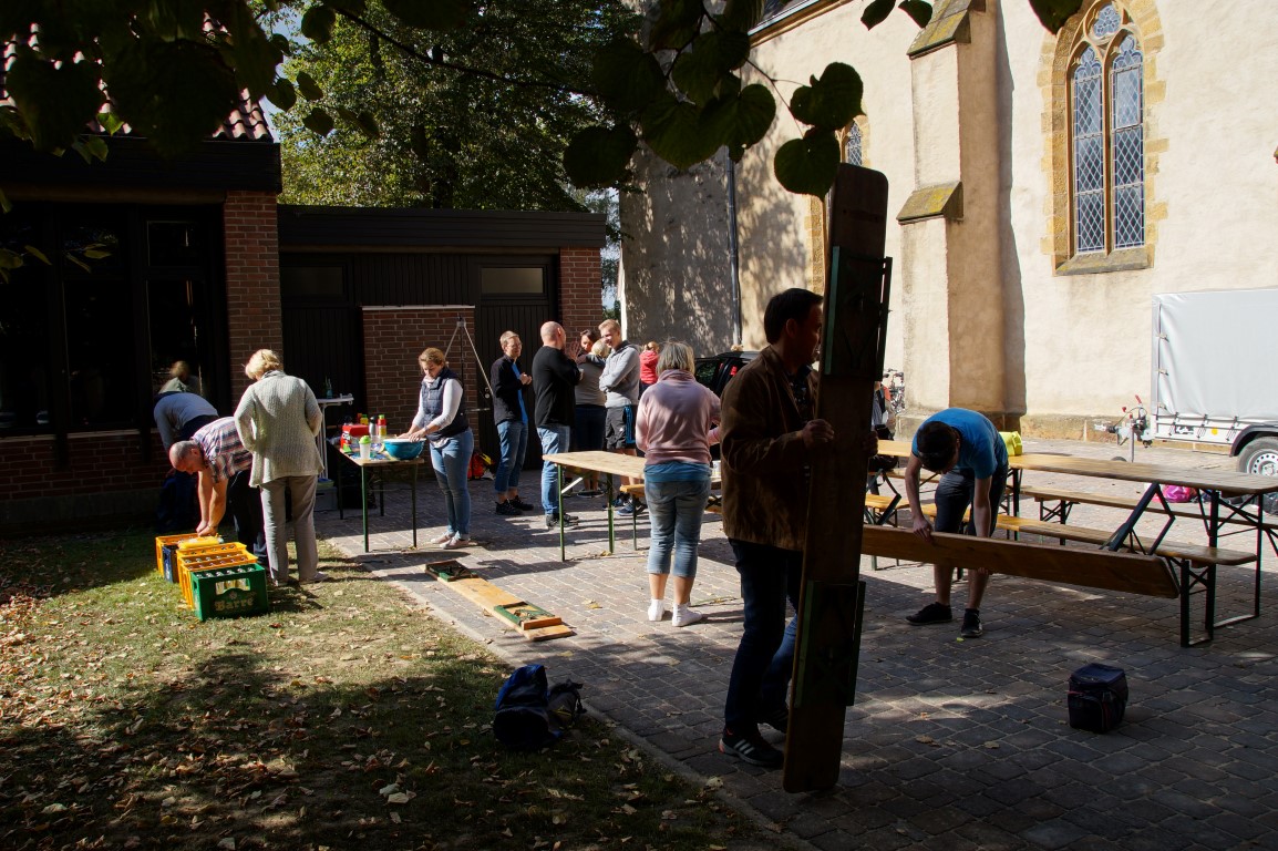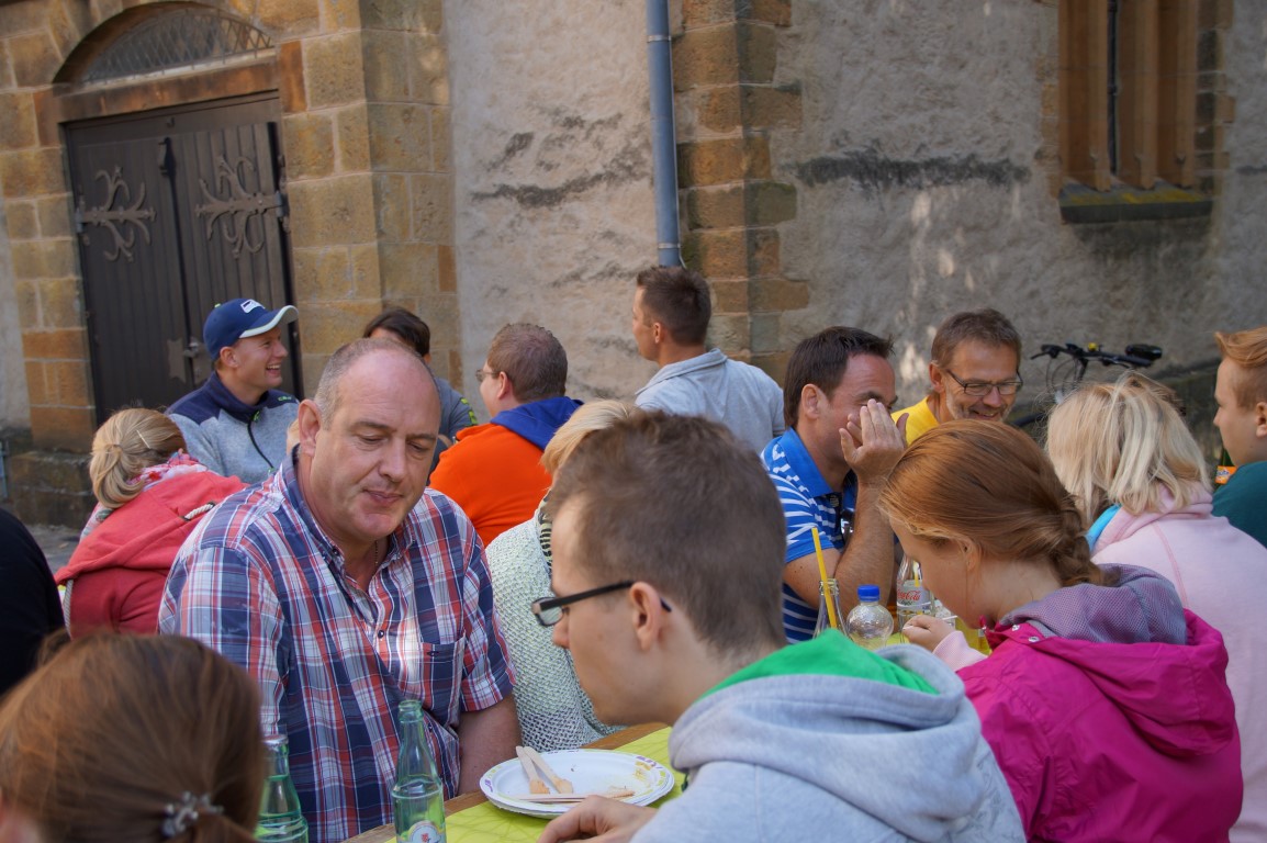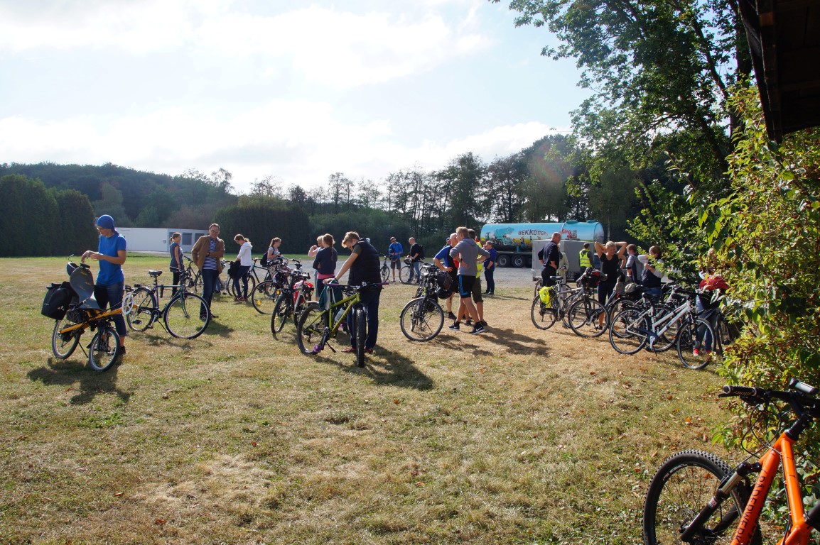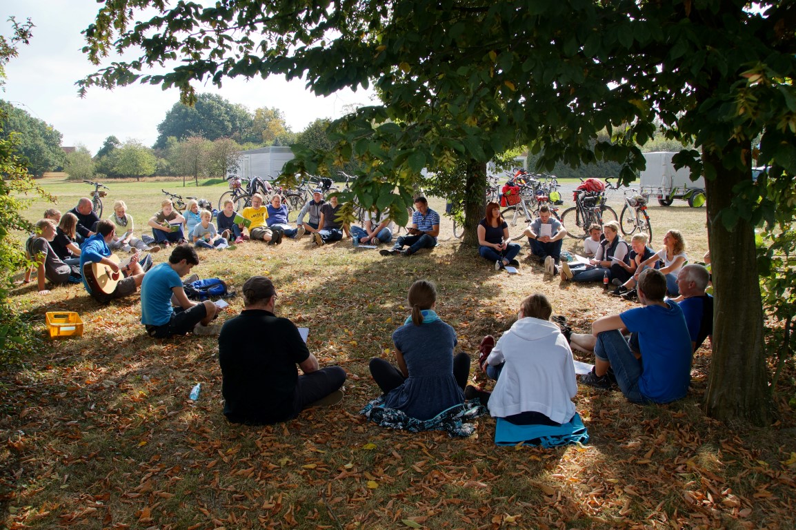 Als wir uns am 18. September zu 10 Uhr auf den Weg zum EK-Heim gemacht haben, hätte keiner so richtig für möglich gehalten, wie schön das Wetter noch an diesem Tag werden sollte. 30 Radfahrerinnen und Radfahrer kamen zusammen – Kinder, Jugendliche und Erwachse – Mitarbeiter, Teilnehmer und Eltern. Nach einem Gebet und kurzer Einweisung über das korrekte Fahrradfahren in einer Gruppe ging es auch schon los. Über den Friedhof Ennigloh gerollert oder geschoben ging es Richtung Riemsloh. Am Festplatz angekommen, warteten kalte Getränke und eine wundervolle grüne Wiese im Halbschatten auf uns. Wir sangen im Kreis ein paar Lieder und hörten eine Andacht zum Thema Leidenschaft – Leidenschaft für unsere Hobbies, z.B. Radfahren, aber auch Leidenschaft für Jesus und das nach außen tragen zu wollen. Weiter ging es über St. Annen und Bardüttingdorf über geplante Umwege zum Gemeindehaus nach Spenge. Auch hier war der Grill schon an und die Tische waren gestellt, als wir nach einer weitere Stunde Fahrt unsere Räder abstellten und uns auf eine ausgiebige Mittagspause freuten. Nach leckeren Würstchen und Salat quatschen die einen und spielen die anderen. Gemeinsam wurden dann alle mitgebrachten Dinge wieder im „Besenwagen“ verstaut. Die letzte Etappe lag vor uns – wieder zurück zum EK-Heim, über Enger und Hiddenhausen. Wieder fuhren wir eine gute Stunde, aber dieses Mal deutlich schneller, was dazu führte, dass einige auf dem Weg schon Richtung zu Hause abgebogen sind. So kamen also noch ca. 20 Personen am EK-Heim. Wir schauten dabei in erschöpfte, aber glückliche Gesichter, weil diese Radtour ein gelungenes Event war. Die ausgearbeitete Route über 44 km führte uns durch schöne Ecken der Region, die so nah und teilweise doch so unbekannt waren. Im Endeffekt ein richtig schöner Sonntag bei tollem Wetter und guter Gemeinschaft.