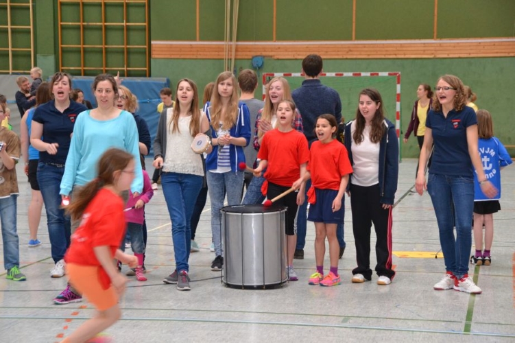 Schlachtrufe, Trommelwirbel, anfeuernde Kinder, Mitarbeiter und Eltern …
