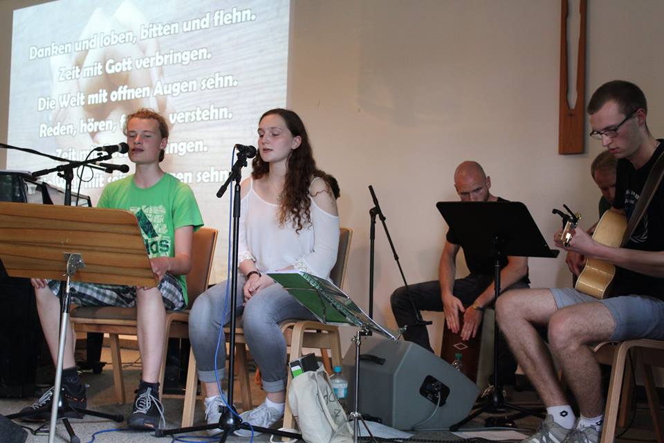 Abends, beim „Break“ Gottesdienst bekamen alle Freizeitmitarbeiterinnen und -mitarbeiter der Sommerfreizeiten ihren Segen zugesprochen, der sie während der Freizeit begleiten soll.